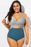 Blue Striped Underwire Cut-Out One Piece Swimsuit