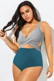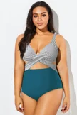 Green Check Twist Front One Piece Swimsuit