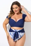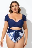 Printed Mesh Elastic One Piece Swimsuit for Lady