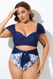 Blue Tie-Back Sweetheart Neckline Underwire Bikini Top - PremCurve
