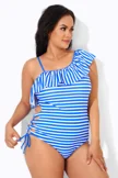 Blue & White Striped Adjustable Strap One Piece Swimsuit - PremCurve