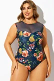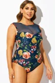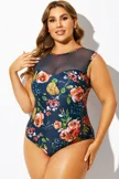 Bouquet Floral Print Mesh One Piece Swimsuit