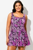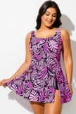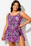 Bright Fuchsia Leaf Square Neck Side Slit Swimdress
