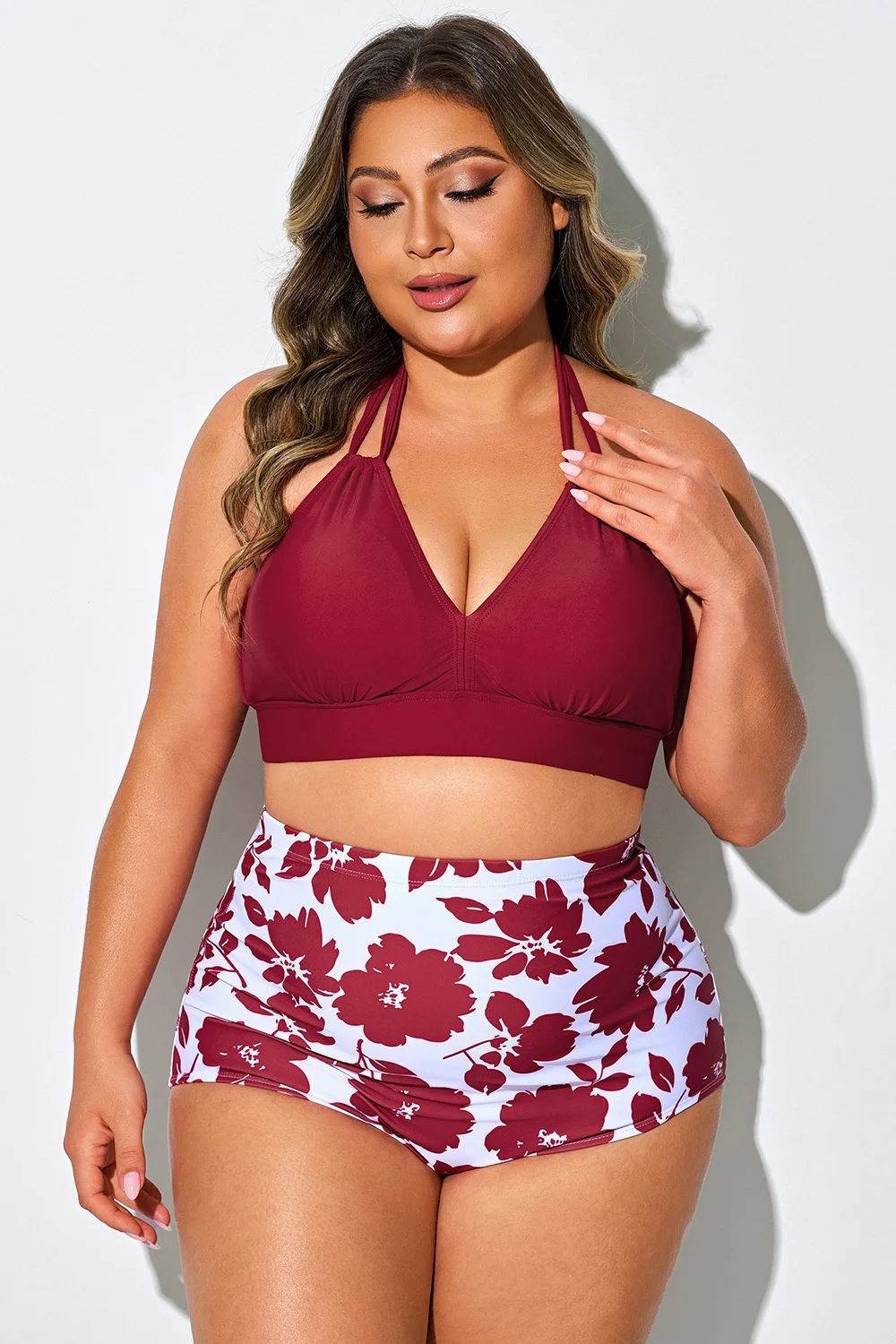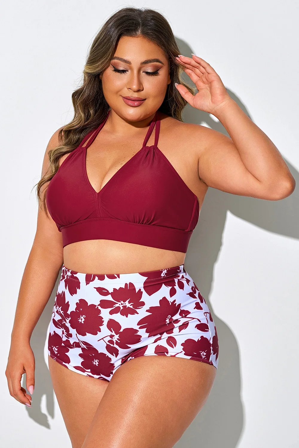 Bright Red V-neck Halter Tie Bikini Top