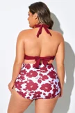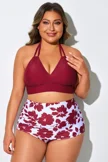 Plus Size Round Neck Black Patchwork Bikini Top