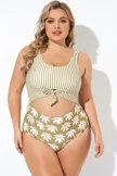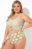 Cactus Stripe Daisy Knotted One Piece Swimsuit