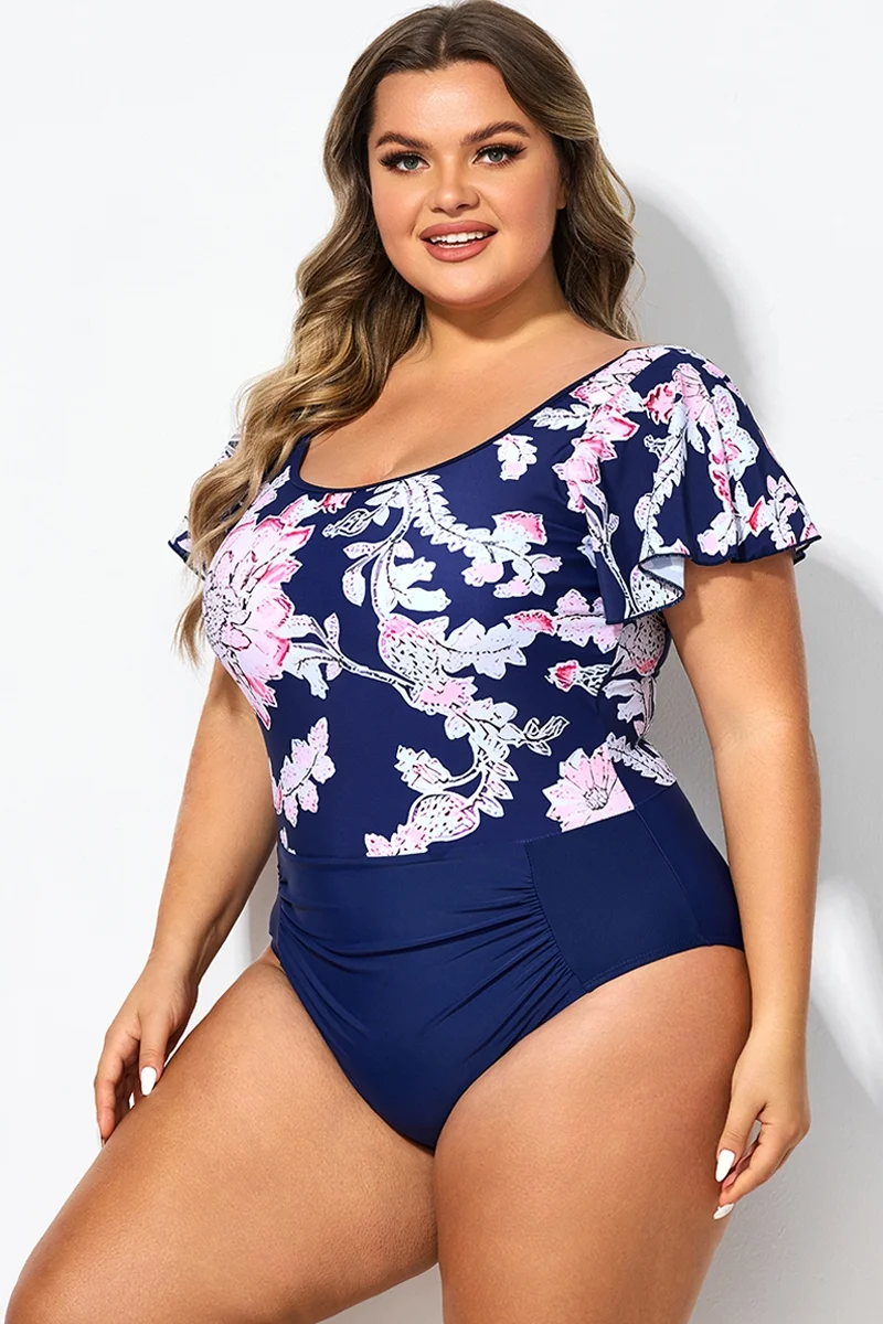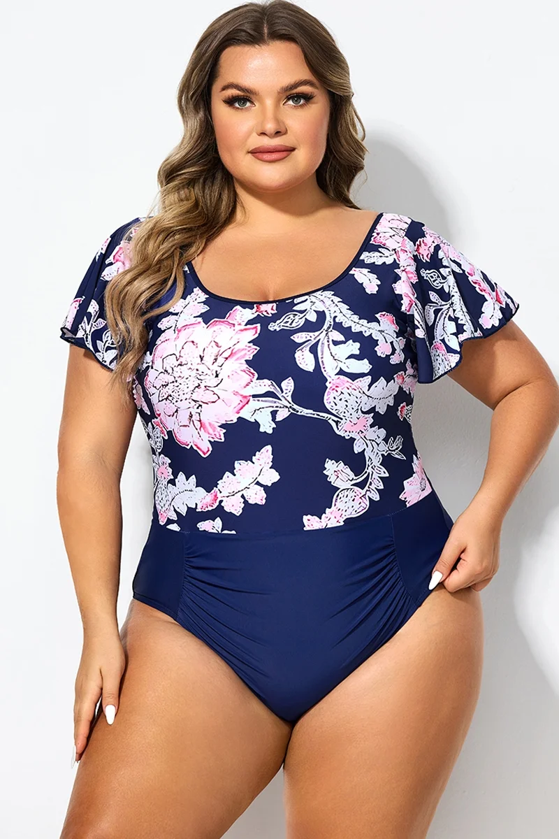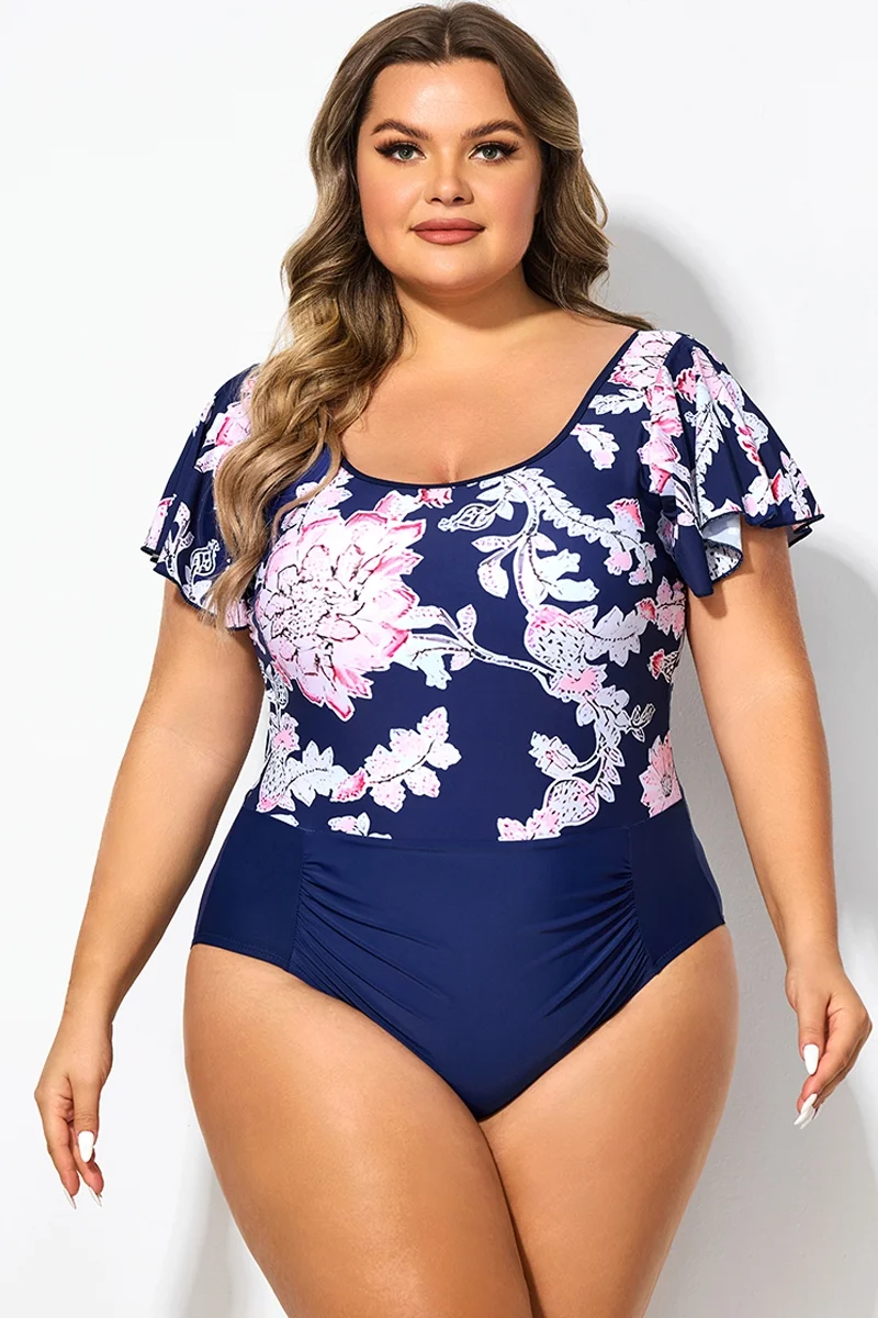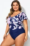 Black Ruffle Sleeves V-Neck One Piece Swimsuit