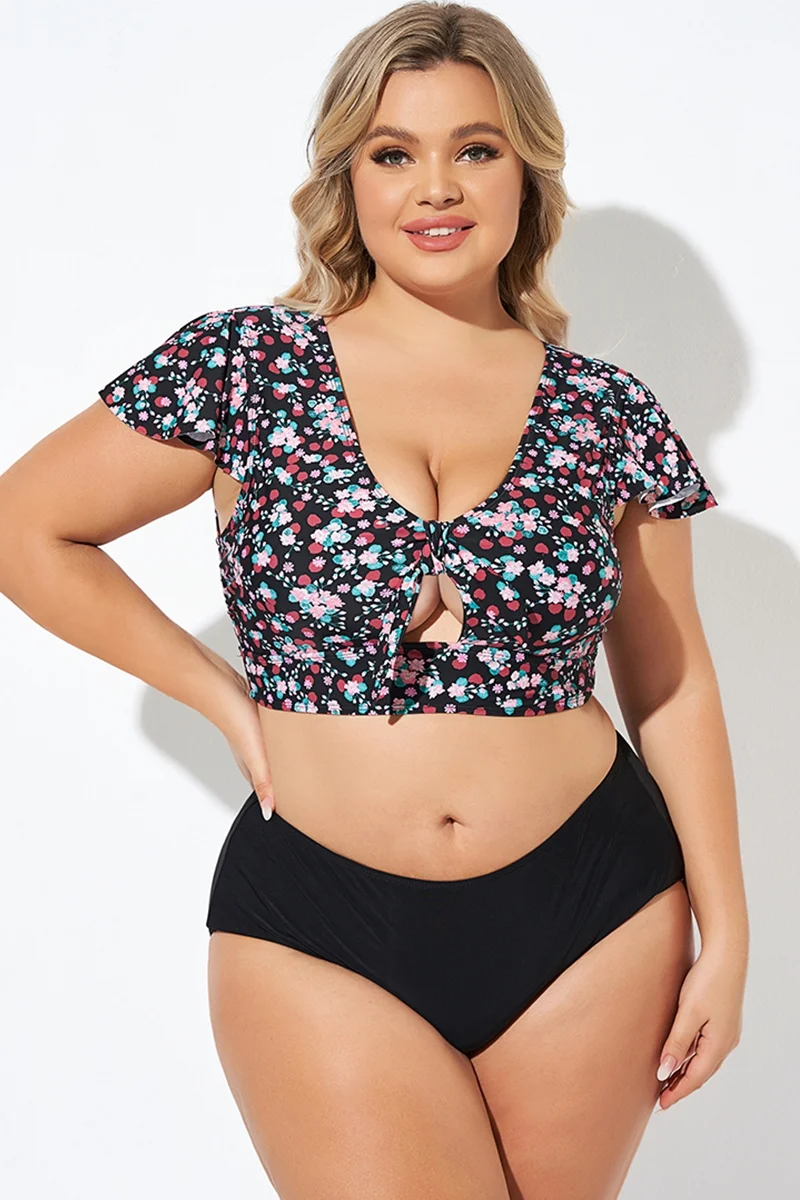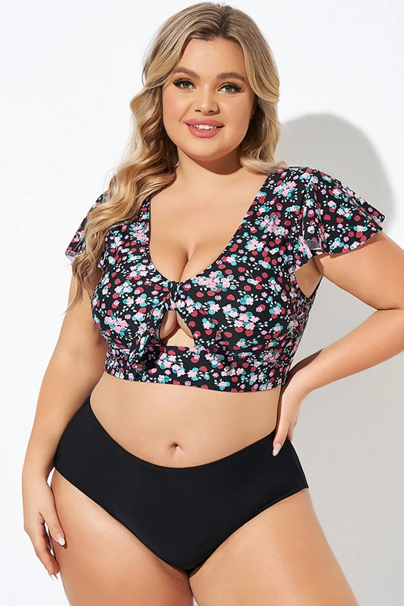 Classic Floral Print Knot Front Women Bikini Top - PremCurve