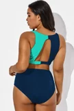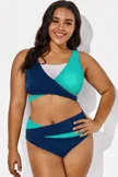 Twist Front Patchwork Colorblock Bikini Top