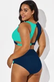 It fits so well and looks great with bottom. I am very busty and have been looking for a swim outfit for years that I can also wear a bra with a top. Finally my wish has been granted. Thanks so much for creating this stylish adorable swim top.