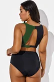Green Check Twist Front One Piece Swimsuit
