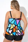 Colorful Adjustable Strap Geometric Print Tankini Top - PremCurve