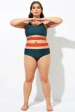 Blue Shirred High Waist Swim Brief For Lady