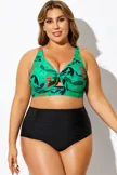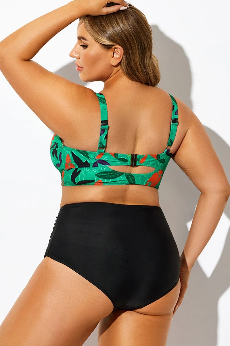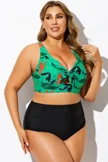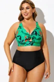 Colorful Leaf Print Knot V-Neck Bikini Top