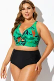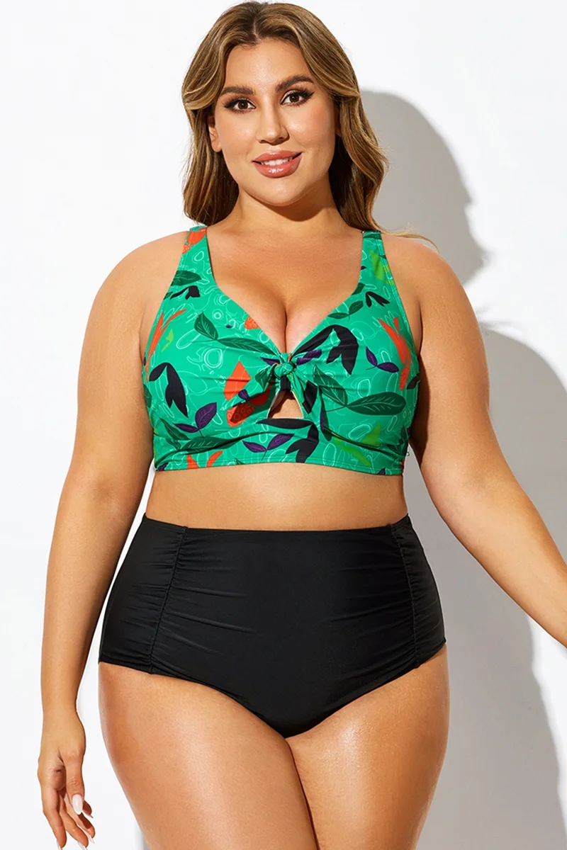Colorful Leaf Print Knot V-Neck Bikini Top - PremCurve