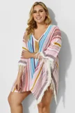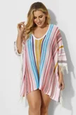 Colorful Vertical Stripes Square Cover Up With Tassels