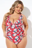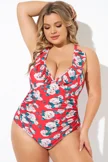 Coral Floral Wireless Ruffle One Piece Swimsuit - PremCurve