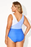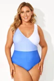 I love the colors! the cut is very flattering too i am 5'2 and 220 lbs just had a baby so i needed something that wasnt to revealing but also nursing friendly. this checked all the boxes. best part is the v on the chest is sewn. I've tried on other swim suits were the intersect of the two materials flare open and reveal the body! This bathing suit fits great and looks great on.