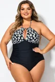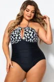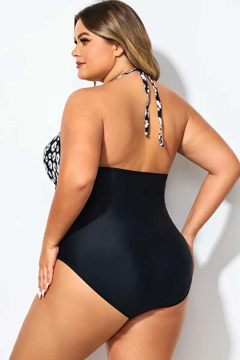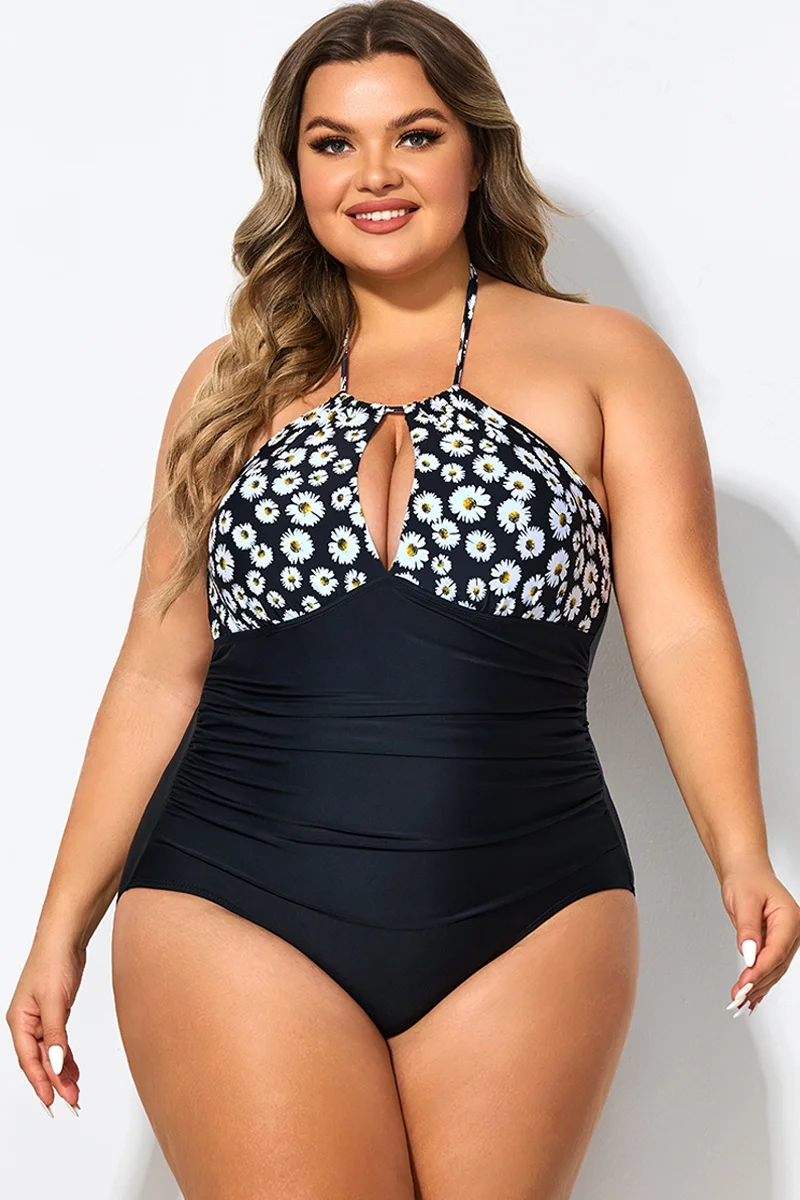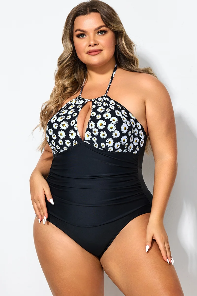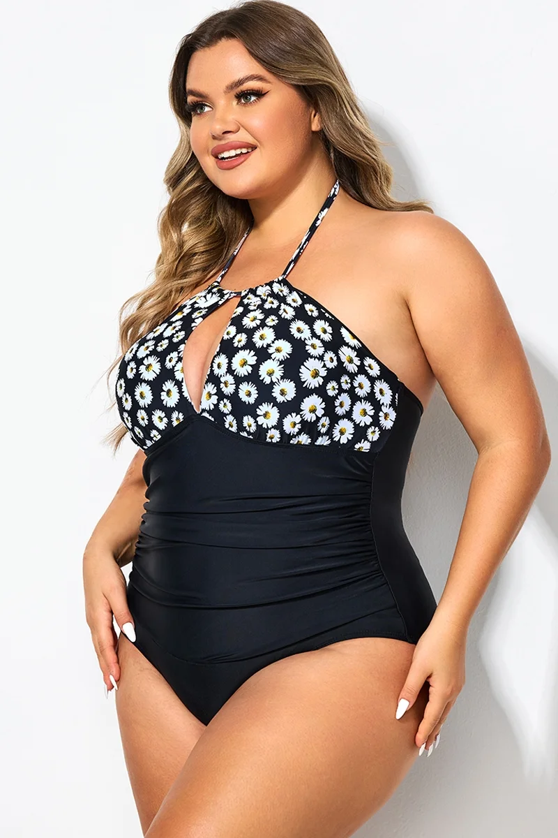 Daisy Print Cutout High Neck One Piece Swimsuit - PremCurve
