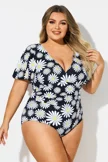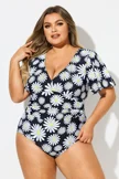 Daisy Print V-Neck Ruffle Sleeves One Piece Swimsuit