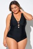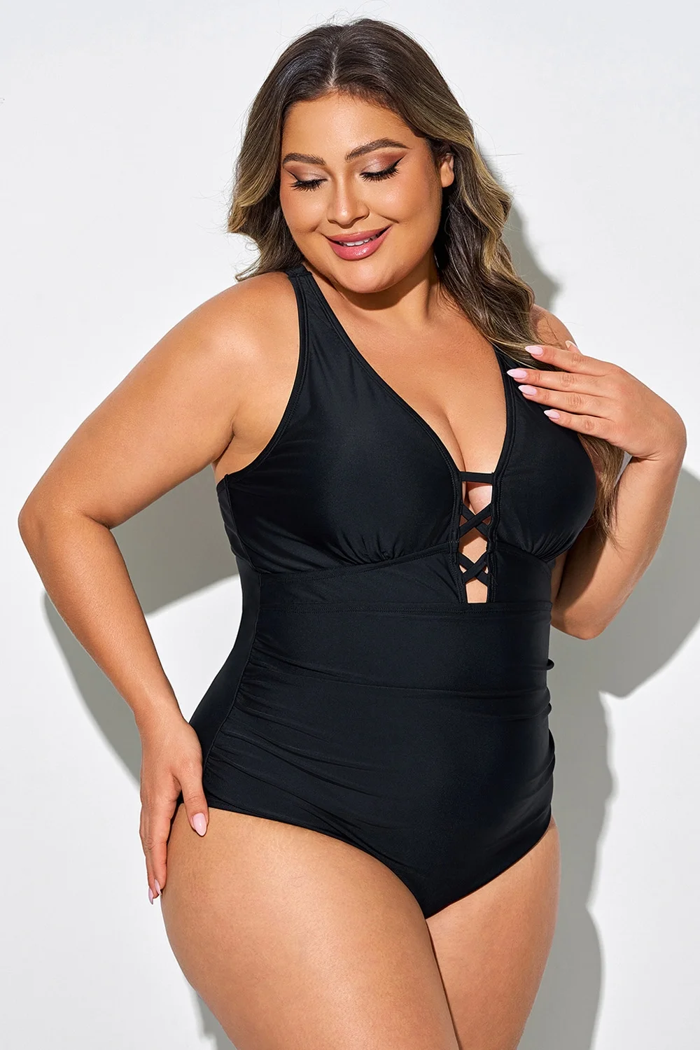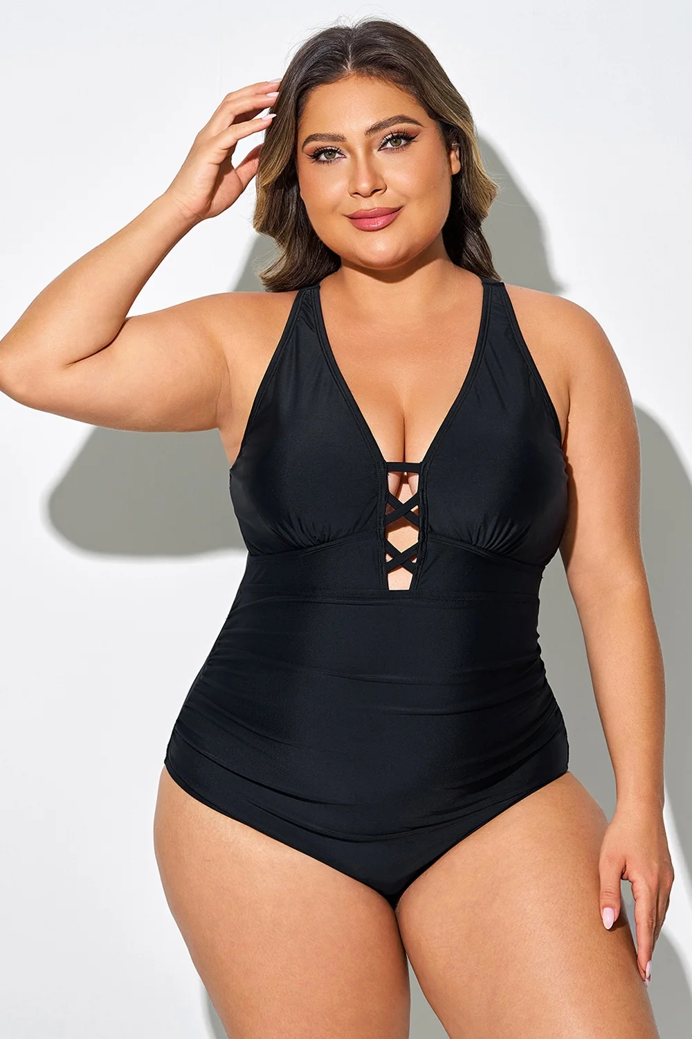 Deep V-neck Criss Cross Back One Piece Swimsuit - PremCurve