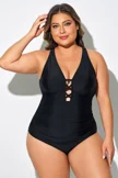 Deep V-Neck Criss Cross Back One Piece Swimsuit