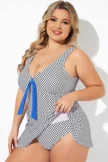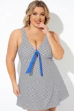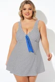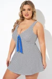 Dots Tie-Front Wide Shoulder Straps Swimdress - PremCurve