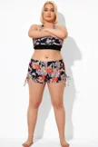 Drawstring Side Flower Printed Swim Shorts