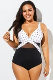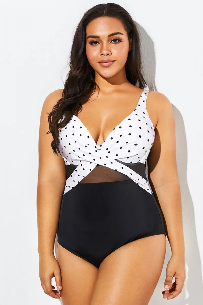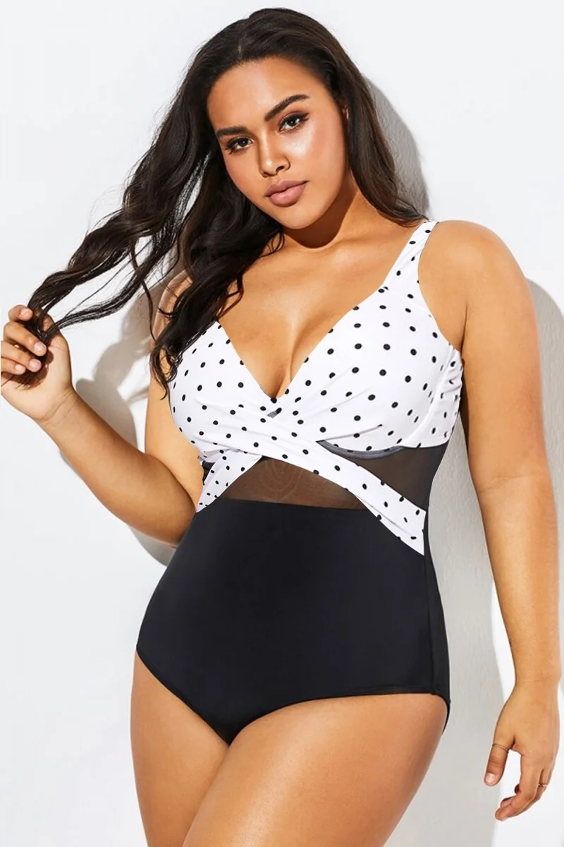 Elegant Dot Colorblock Mesh One Piece Swimsuit - PremCurve