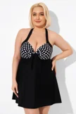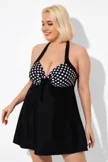 Fashion Black Dot Vintage Drawstring Closure Swimdress - PremCurve