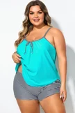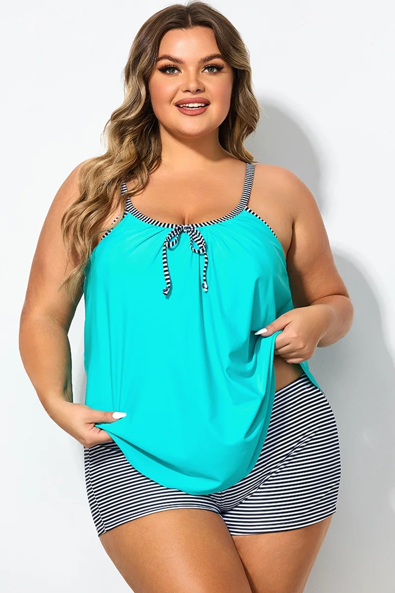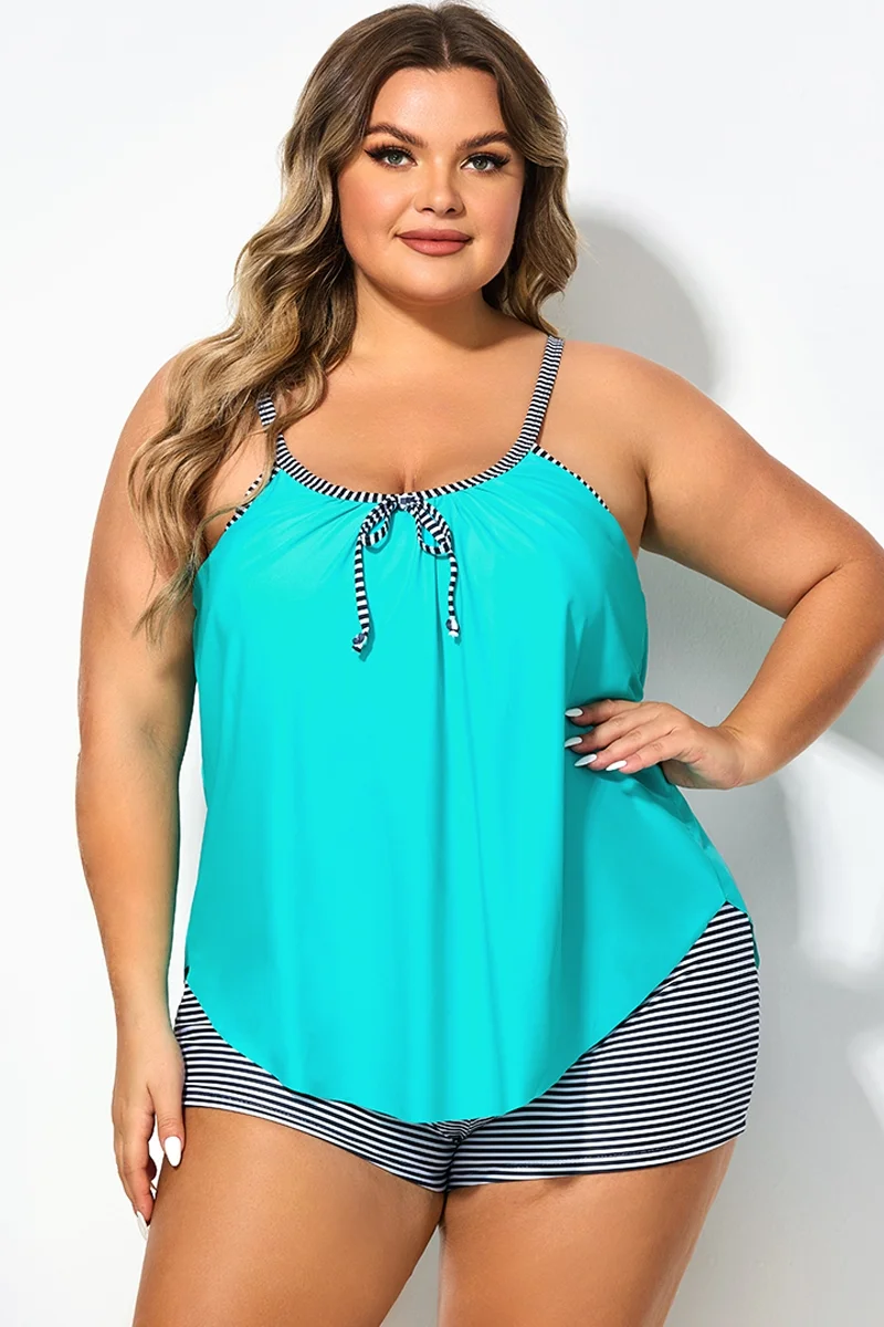 Fashionable Striped bowknot Spaghetti Strap Tankini Top - PremCurve