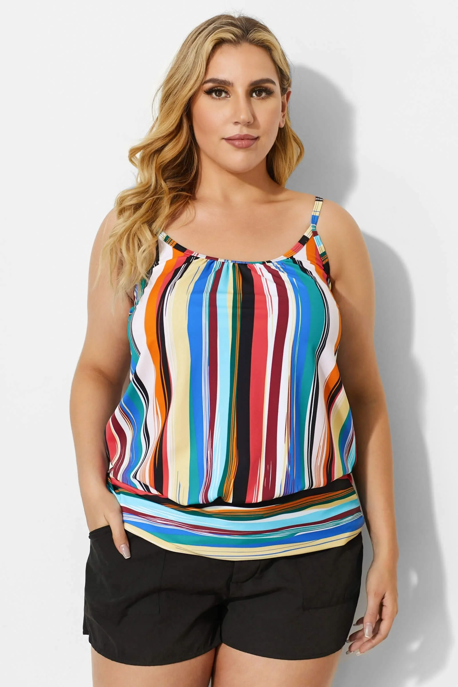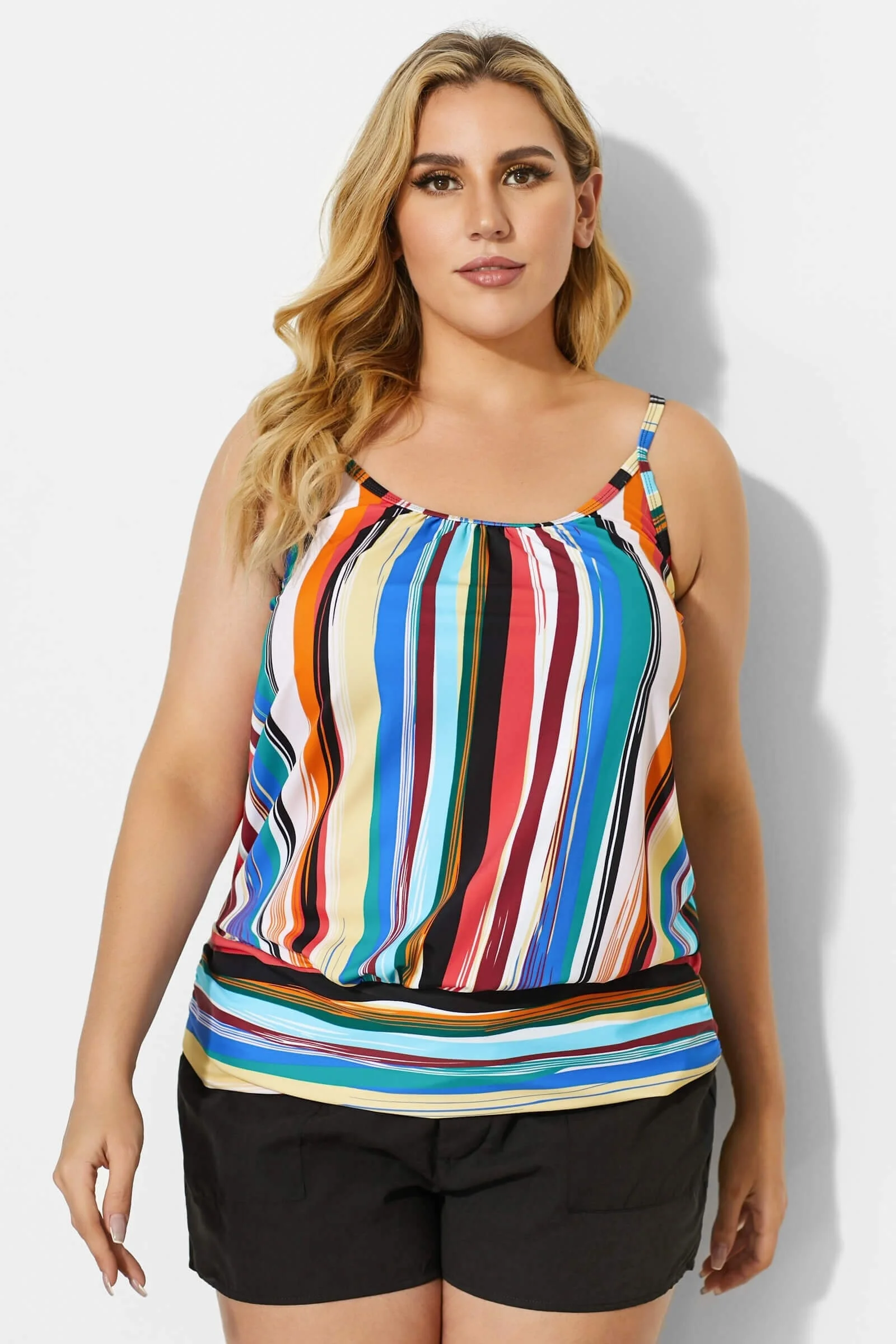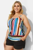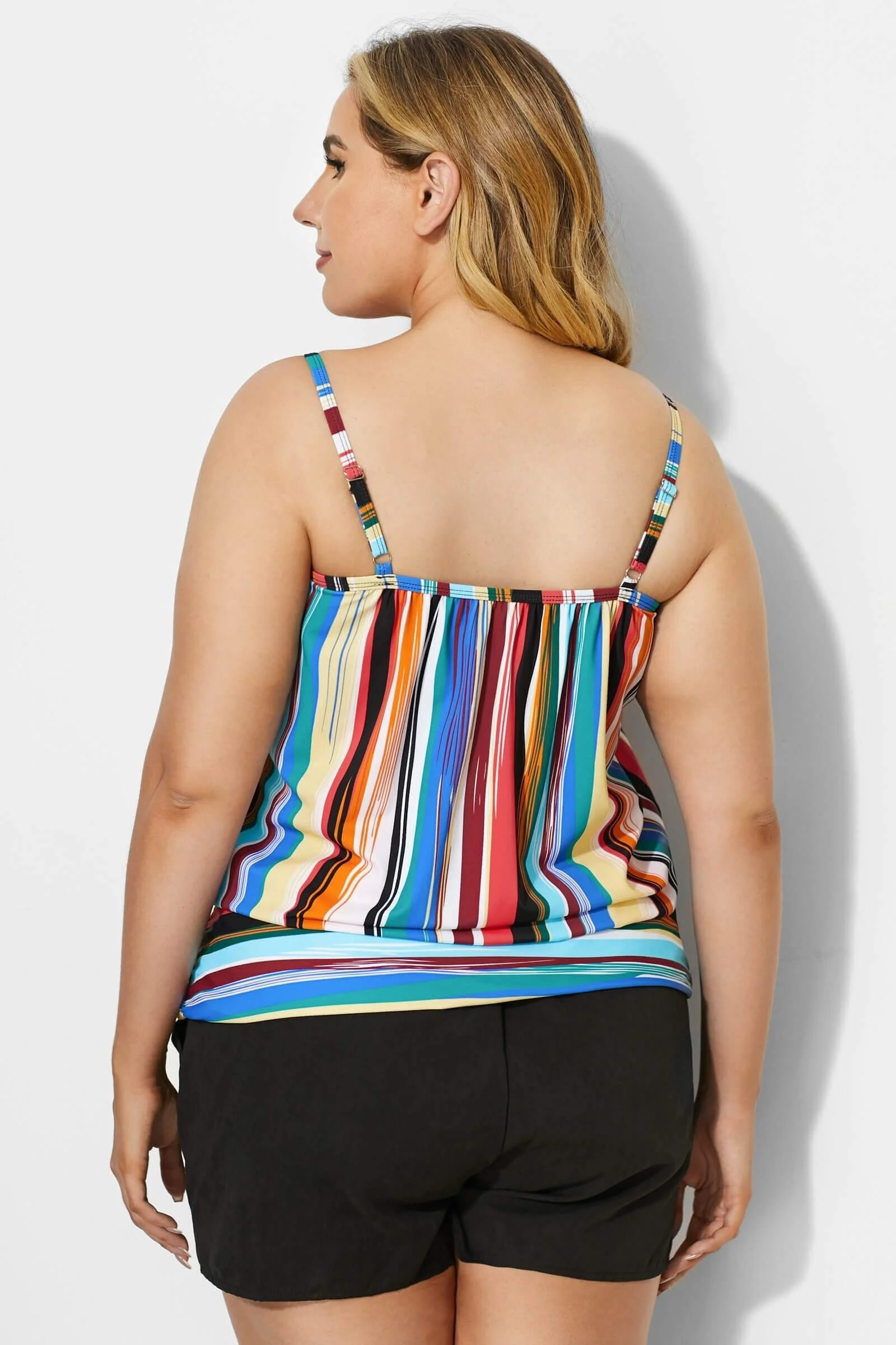 Fashionable Technicolor Draped Blouson Tankini Top - PremCurve