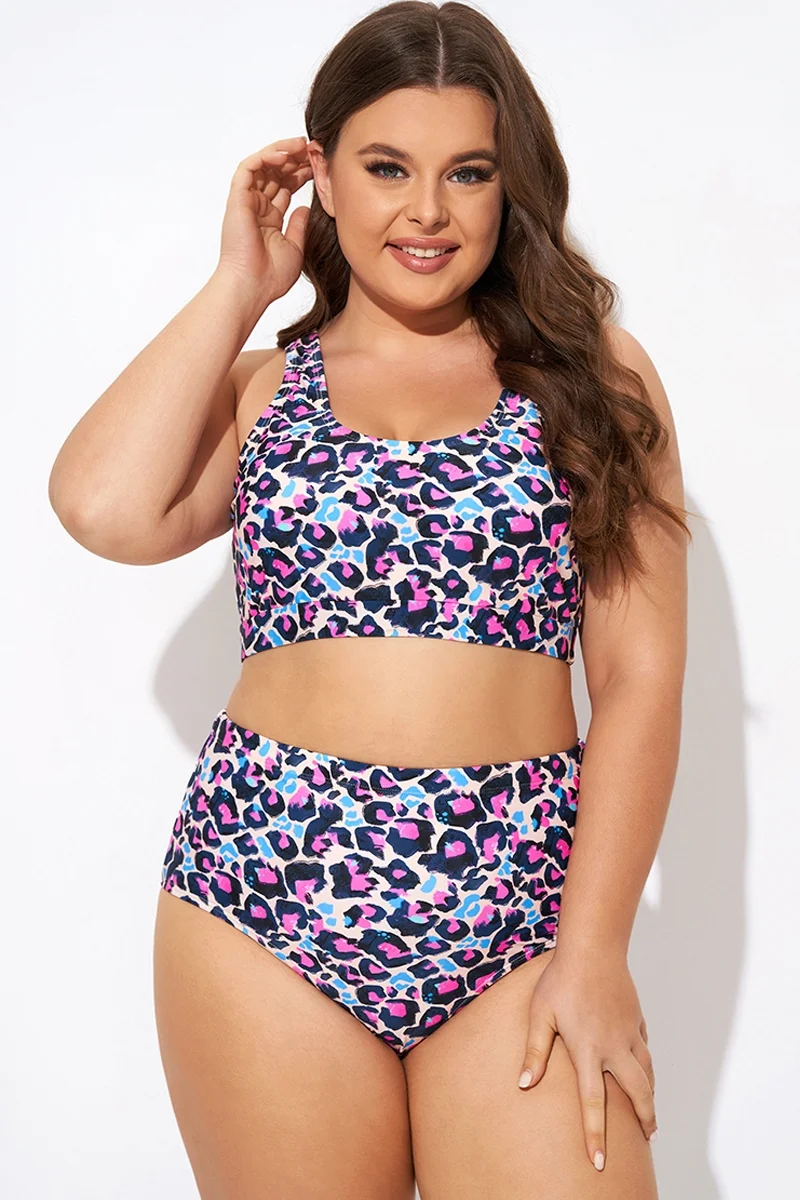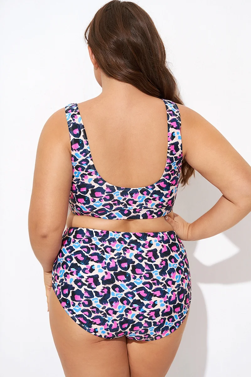 Flattering Peach Leopard Pull-on Design Bikini Top