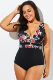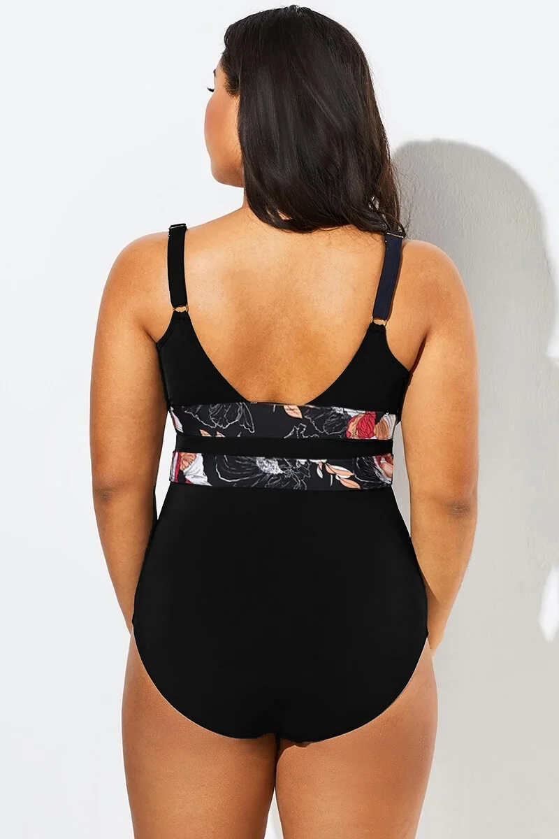 Floral Print Cut Out One Piece Swimsuit