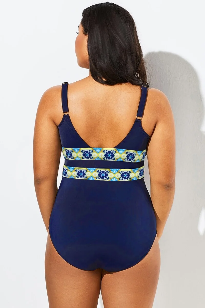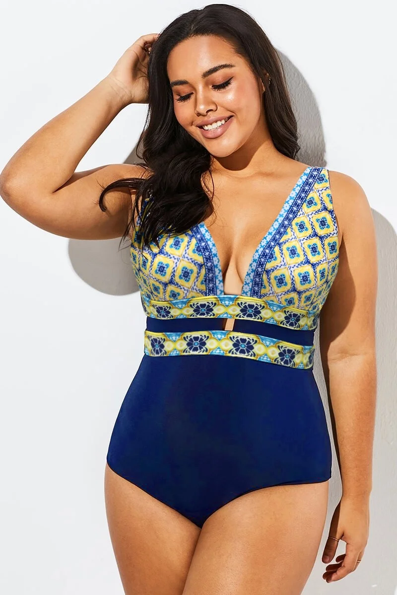 Floral Print Cut Out One Piece Swimsuit - PremCurve
