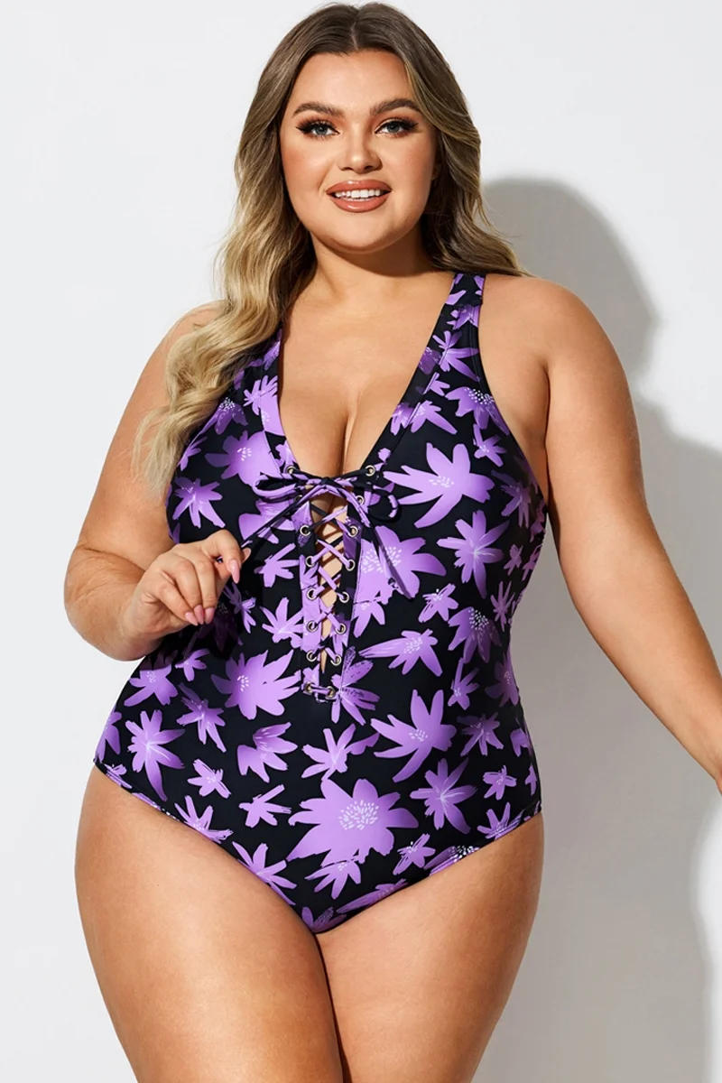 Floral Print Front Line Open Back One Piece Swimsuit - PremCurve