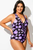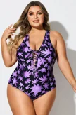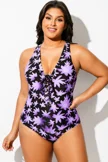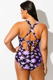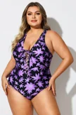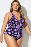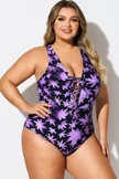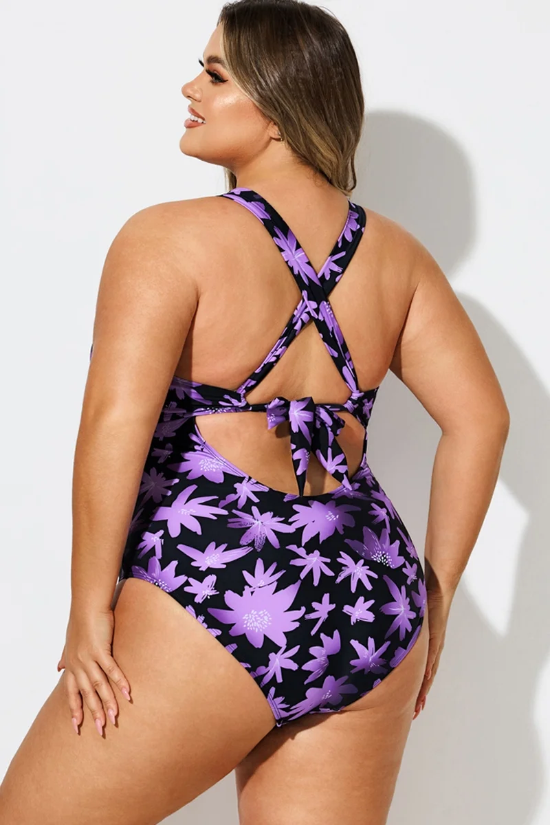 Floral Print Front Line Open Back One Piece Swimsuit