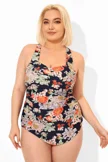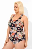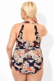 Flower Printed H-Back Sarong Front One Piece Swimsuit - PremCurve