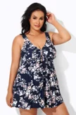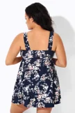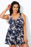 Dusty Blue Floral Print V-Neck Swimdress - PremCurve