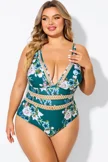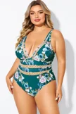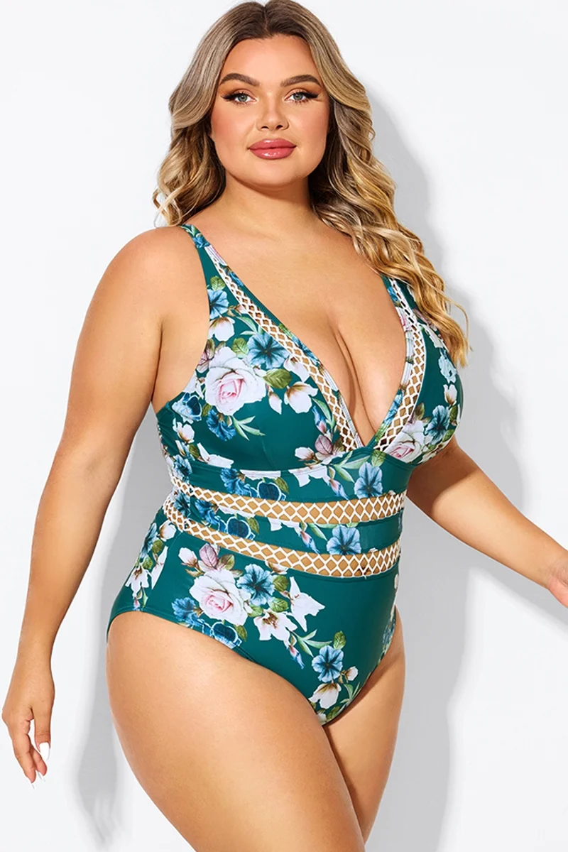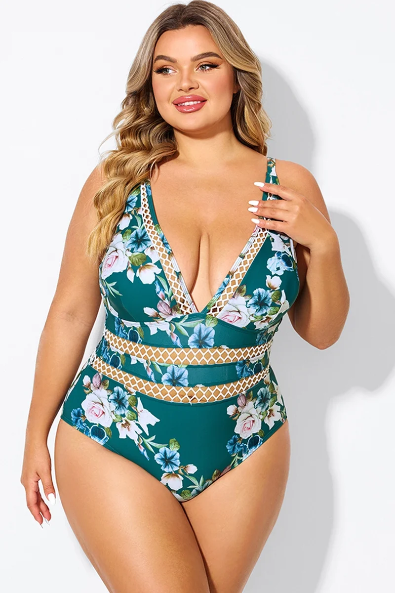 Floral Print Plunge V-neck One Piece Swimsuit - PremCurve