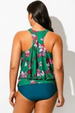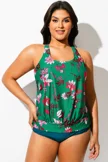 Floral Print Racerback Tummy Control Blouson Tankini Top