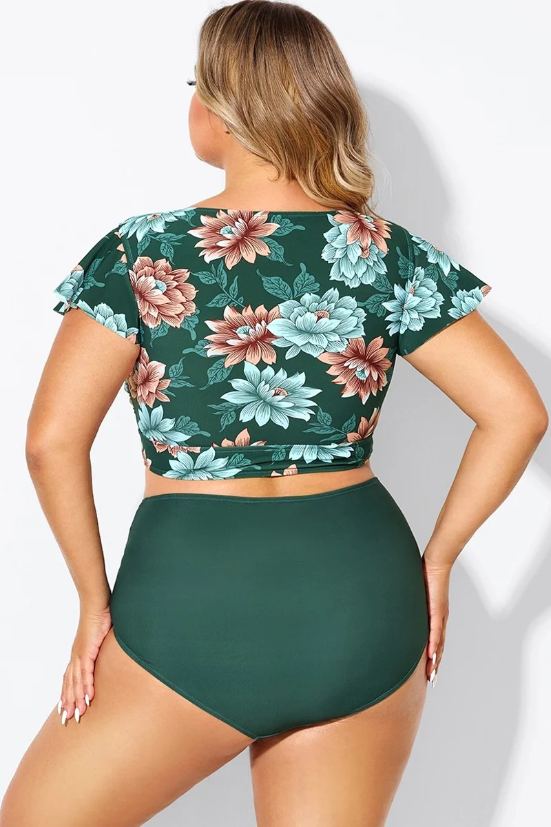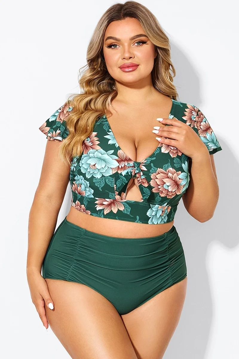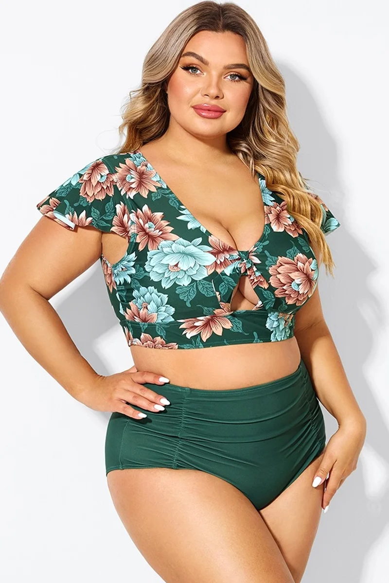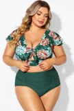 Green Check Twist Front One Piece Swimsuit