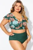 This suit is really pretty and fit accurate to size. The bottoms hid my tummy and the top was flattering. The top stayed put even in the ocean. The price was reasonable and the quality was excellent. Beautiful colors look great on my skin. If you are thinking about buying this, just do it.