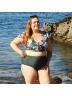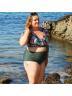 Plus Size Round Neck Black Patchwork Bikini Top