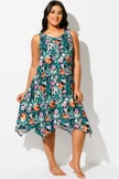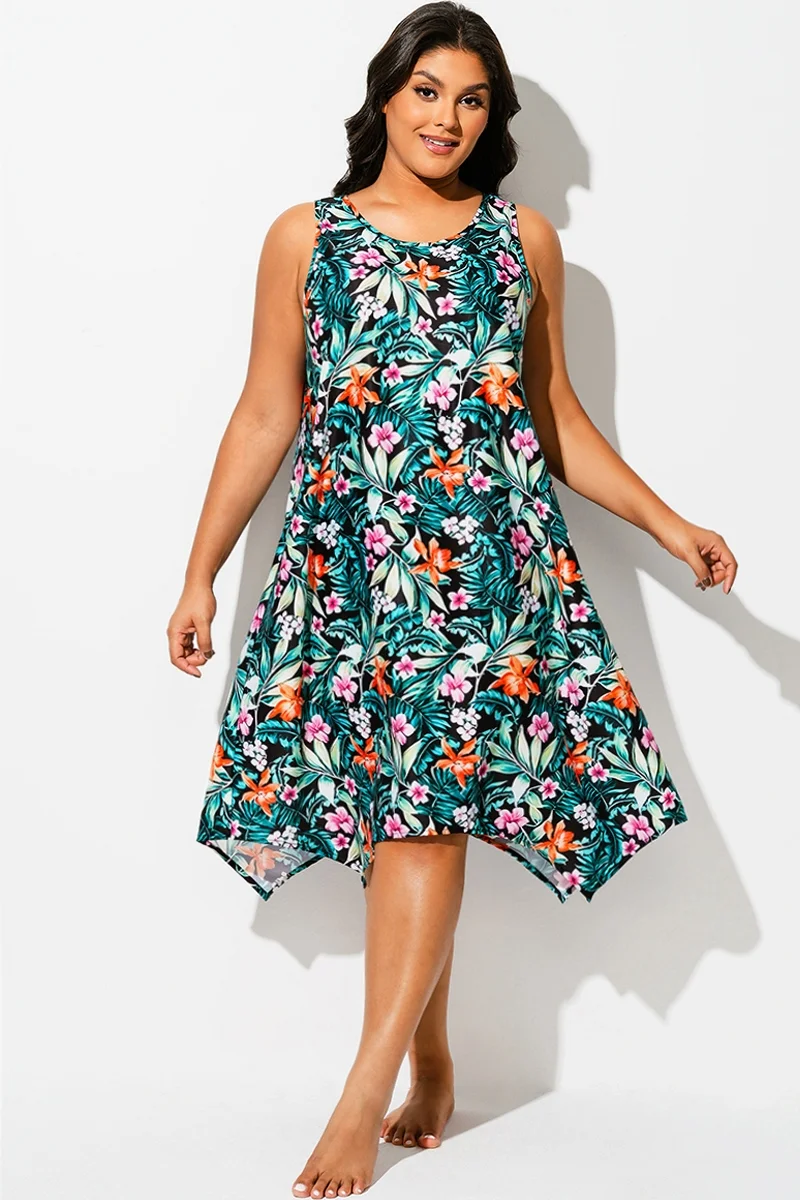 Floral Print Round Neck Sharktail Beach Cover Up - PremCurve
