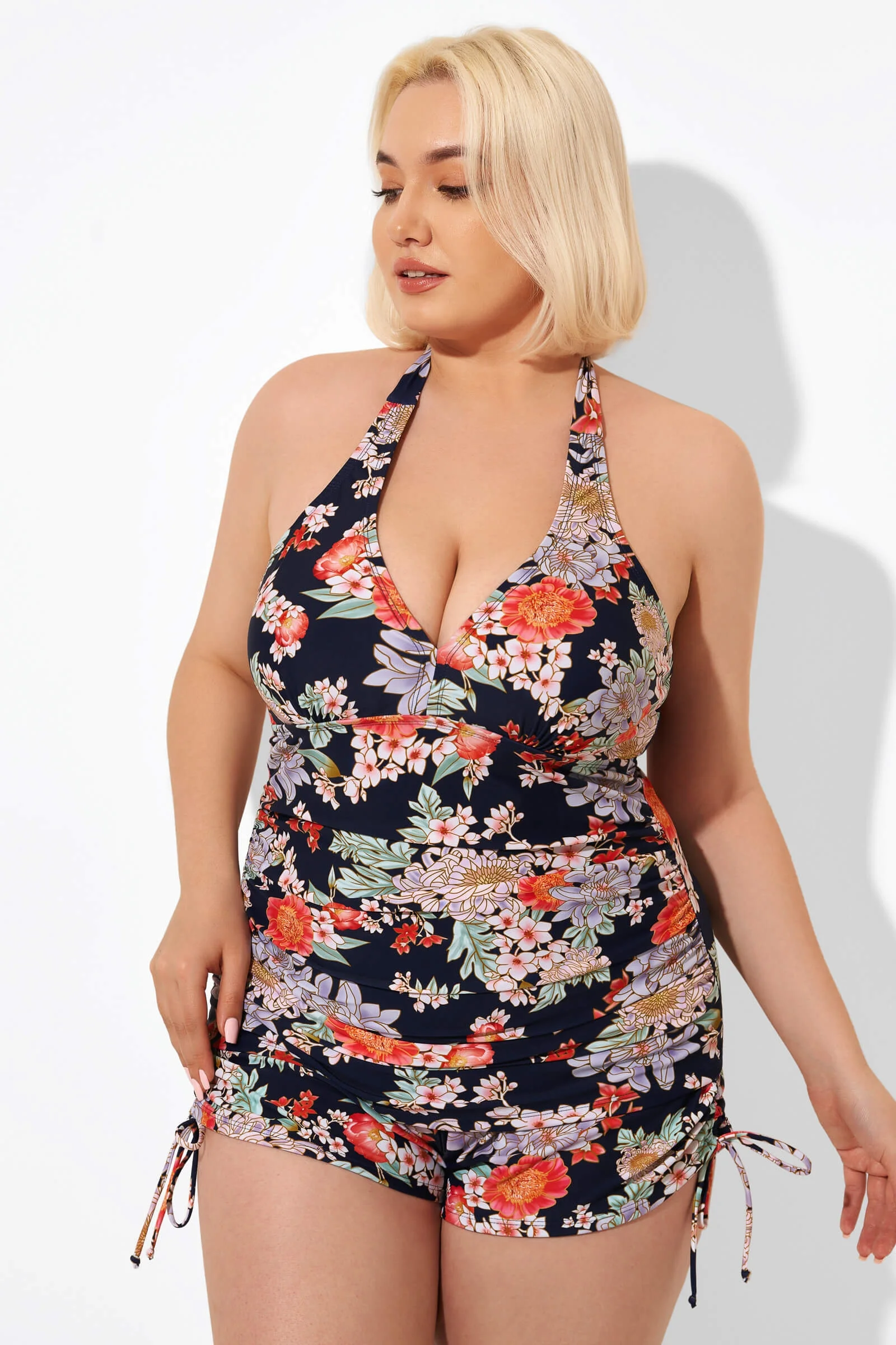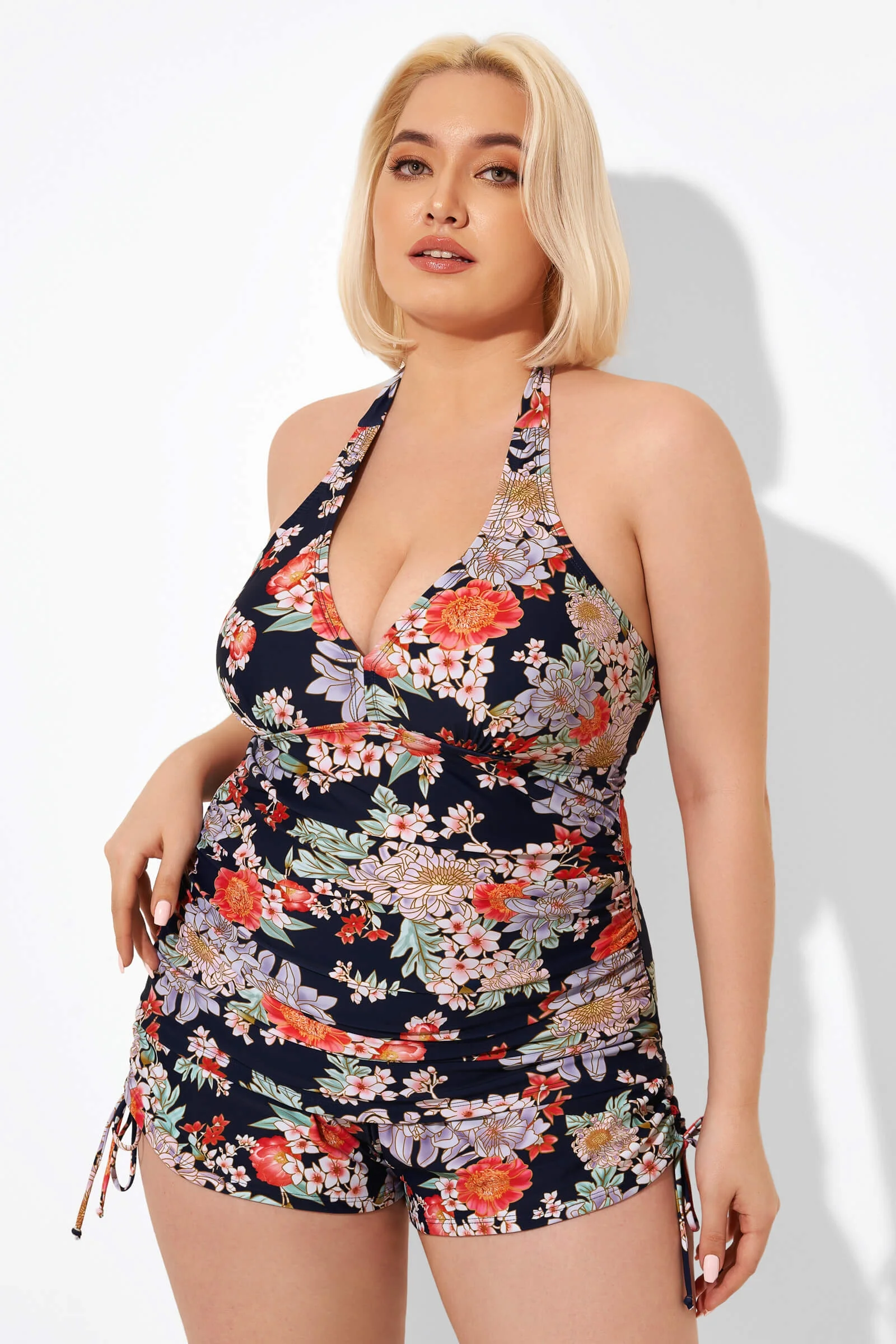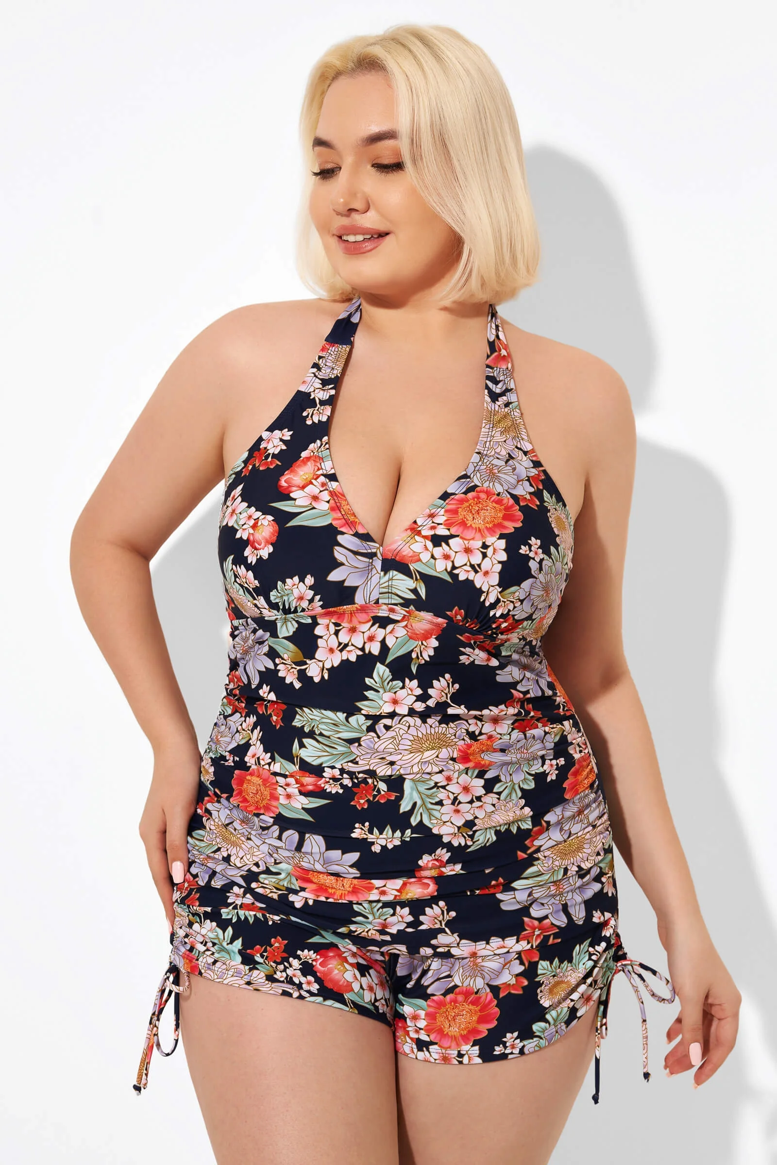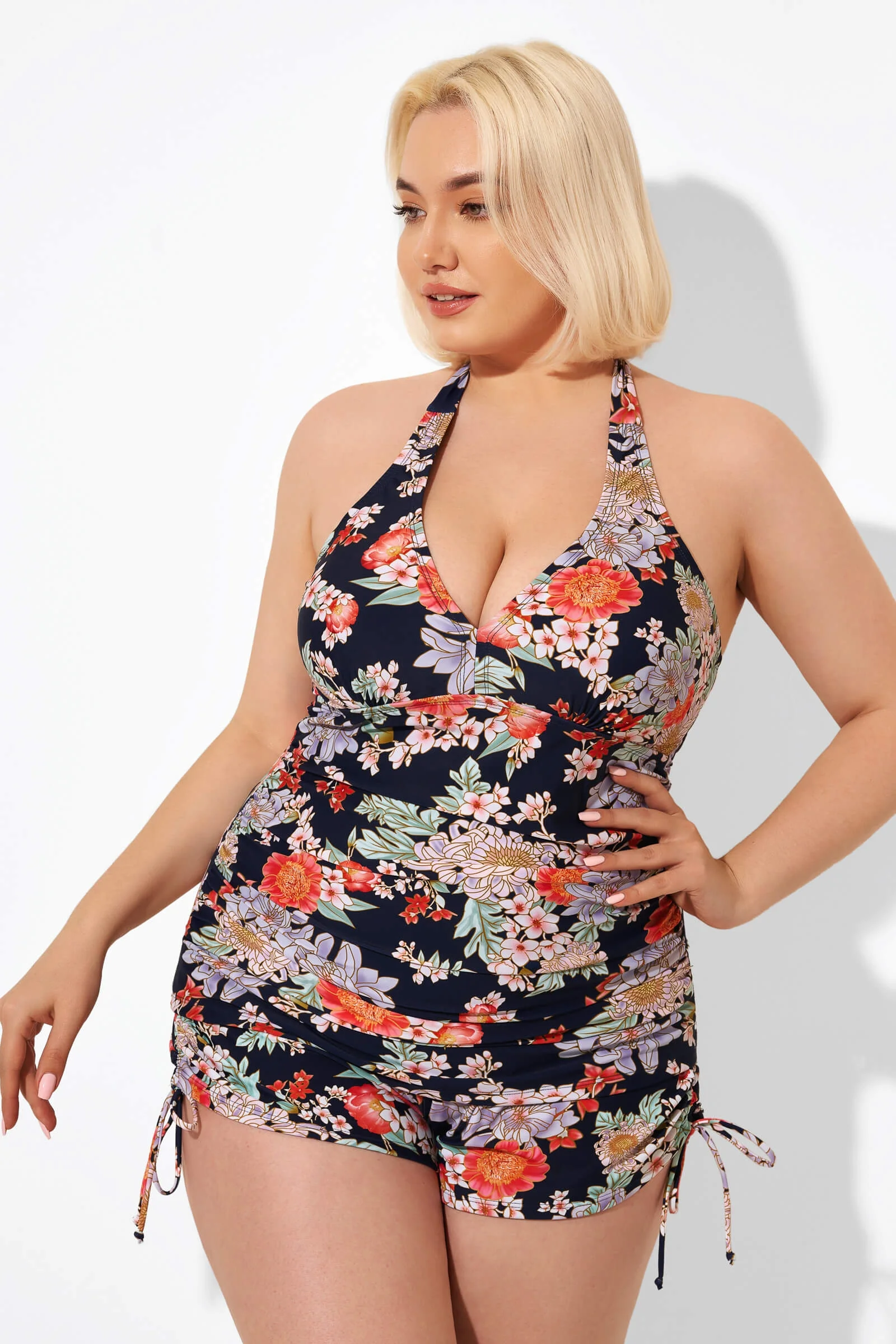 The flower print color selection in this bathing suit is absolutely beautiful. The colors are what caught my attention, and prompted me to select it to have and take on an upcoming trip. Much of my wardrobe is focused around black, so I stepped out of my box when I chose this tankini set. And I’m glad I did! The suit arrived quickly, and I anxiously opened it. I was immediately impressed by the quality and workmanship of the two pieces. The colors are just as vibrant and beautiful in person, as they appeared online. The fabric is a nice weight and not thin or flimsy, like some swimwear can be. There’s a nice stretch to the fabric, and the stitching is well done, with no hanging/loose threads. The design of the ruched v-neck is flattering, and the halter ties are a good length….not so long they tickle the middle of your back, yet long enough to tie a nice bow. Most importantly, after trying it on, I laundered it (hand washed and laid out to dry), and it did not affect the colors or the fit. As for the fit, I chose a size 3xl because my busty body. My measurements were on the upper end of the size small measurements on their size chart, so I figured I might be able to do either. I probably could have worn a smaller, but I think it would have been snug in places. The size fits and because of the stretch, it’s not tight, but hangs nicely with the ruching. I’d personally rather have it a little big, instead of it being notably small and hugging my body. All in all, I am VERY pleased with this suit, and if I didn’t already have a second suit (with a black background) to take on my trip! I feel this bathing suit set is of good quality and should last quite awhile for me. I don’t live close to a beach or natural water source, nor do I frequent the local swimming pool, so it will be lucky to get a yearly dip in any water, other than a washing tub. If I have any additional comments on wearing the suit after my trip to the beach and resort pools, I will post an update.