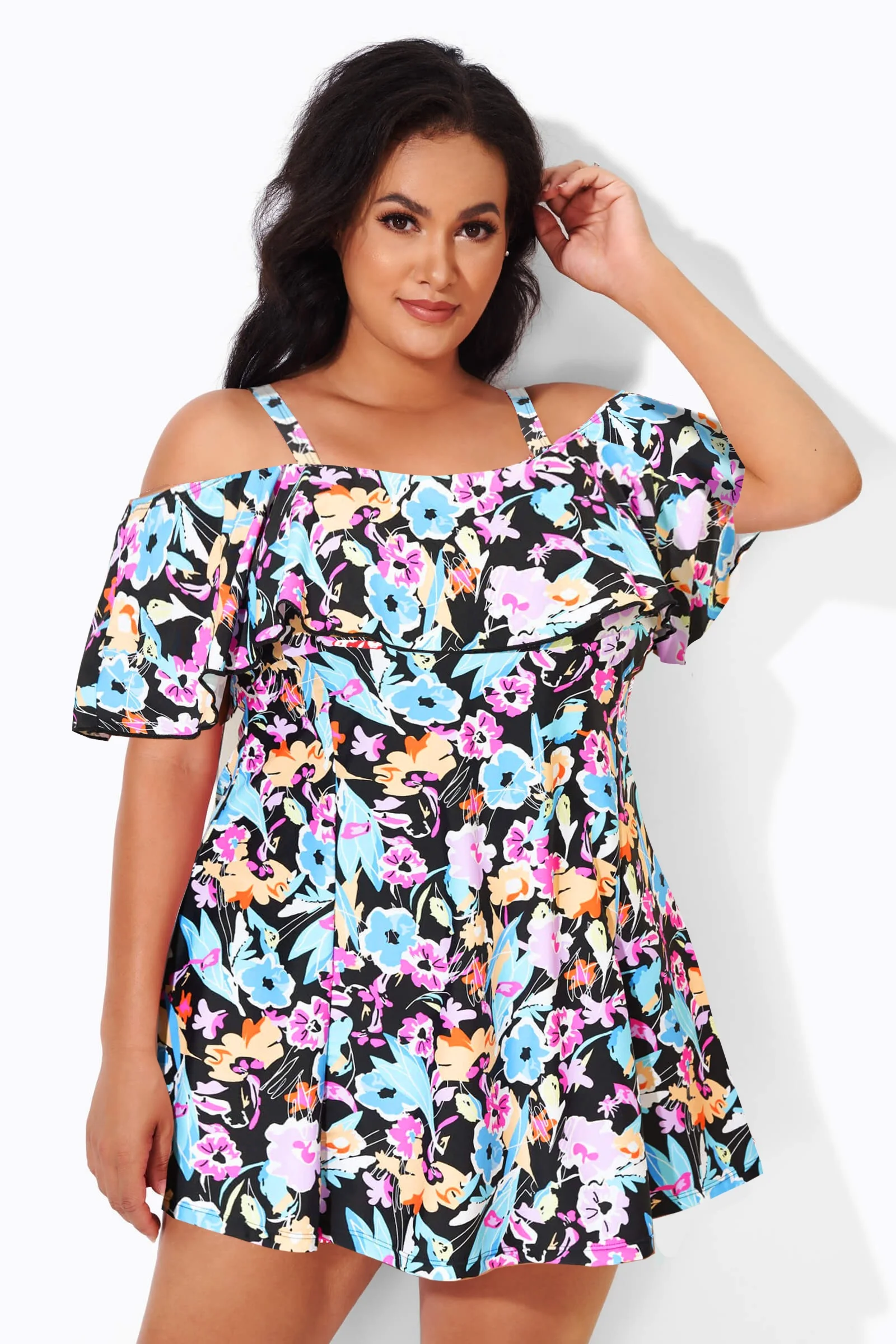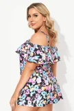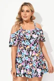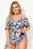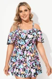 Floral Printed Off-The-Shoulder Flounce Swimdress - PremCurve