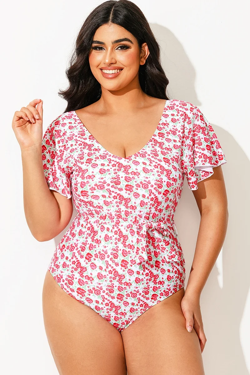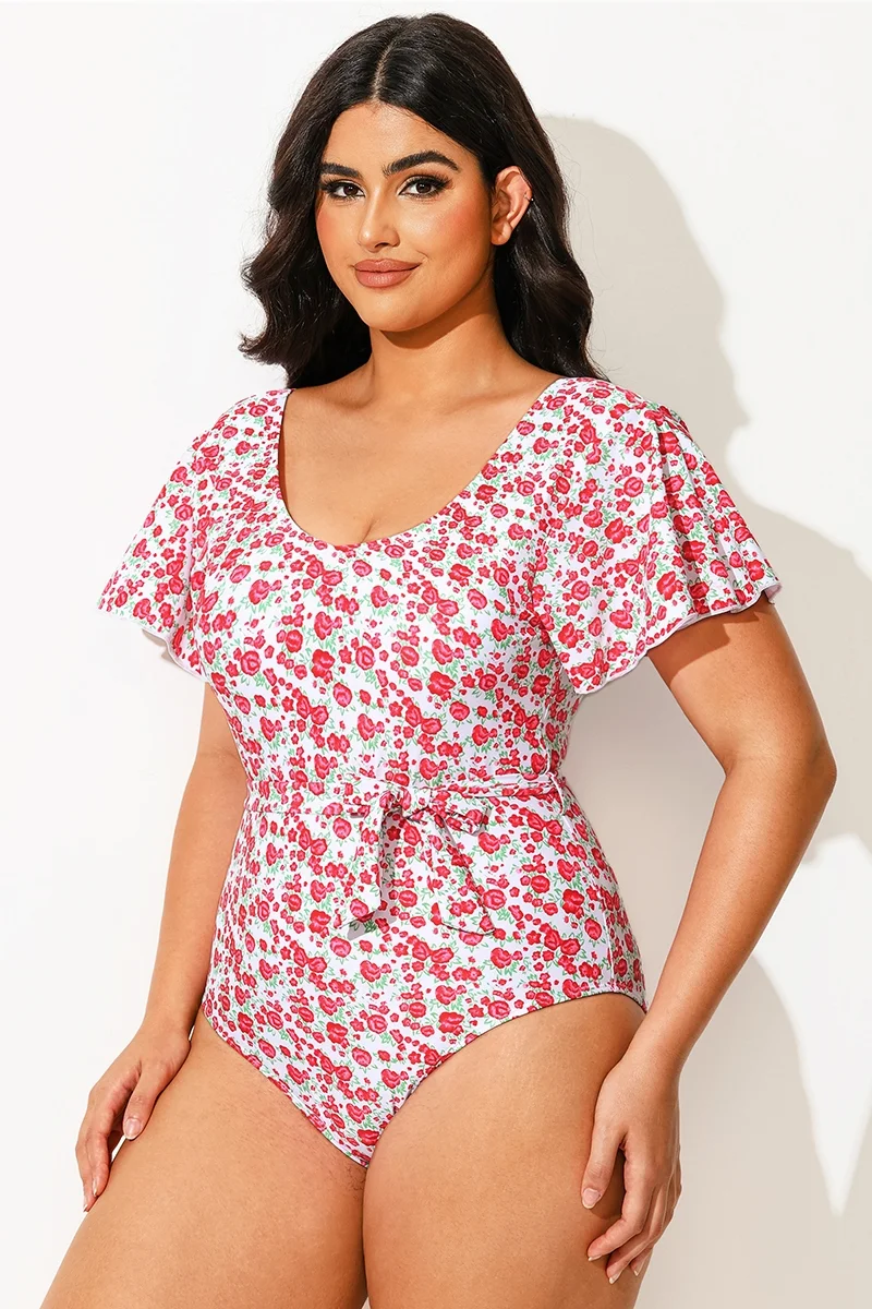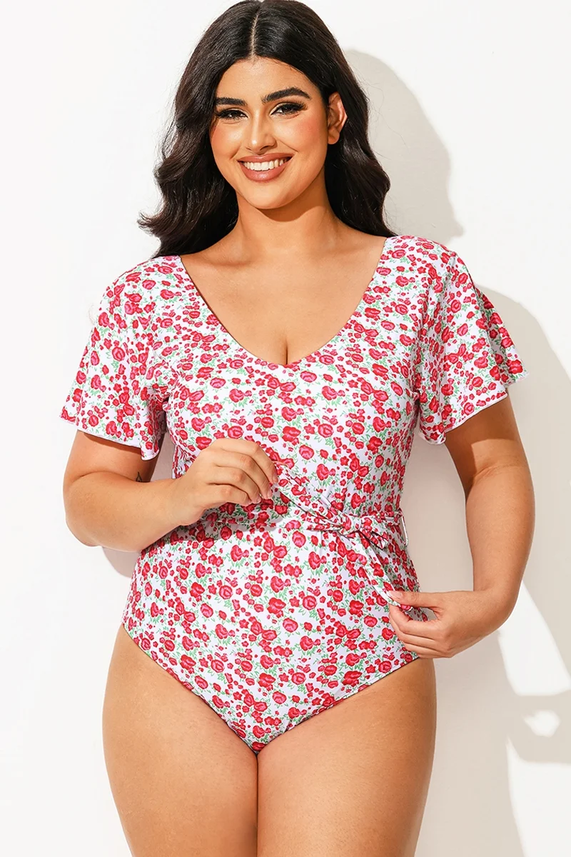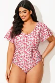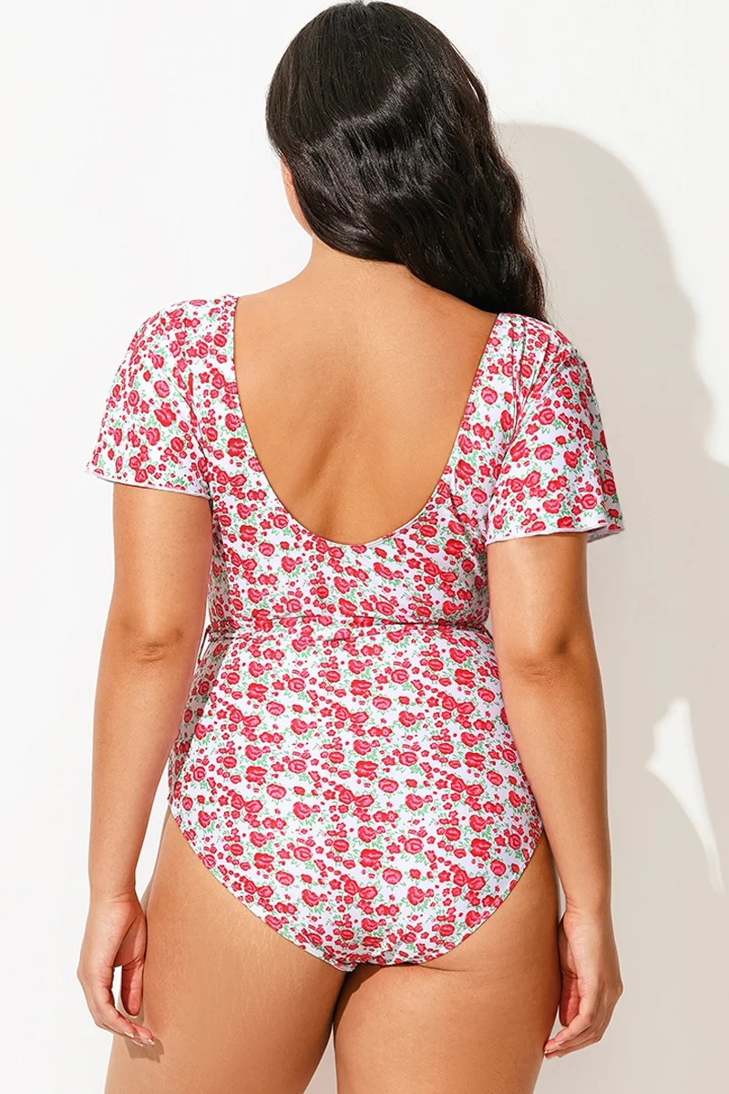 Floral Printed One Piece Swimsuit With Sleeves