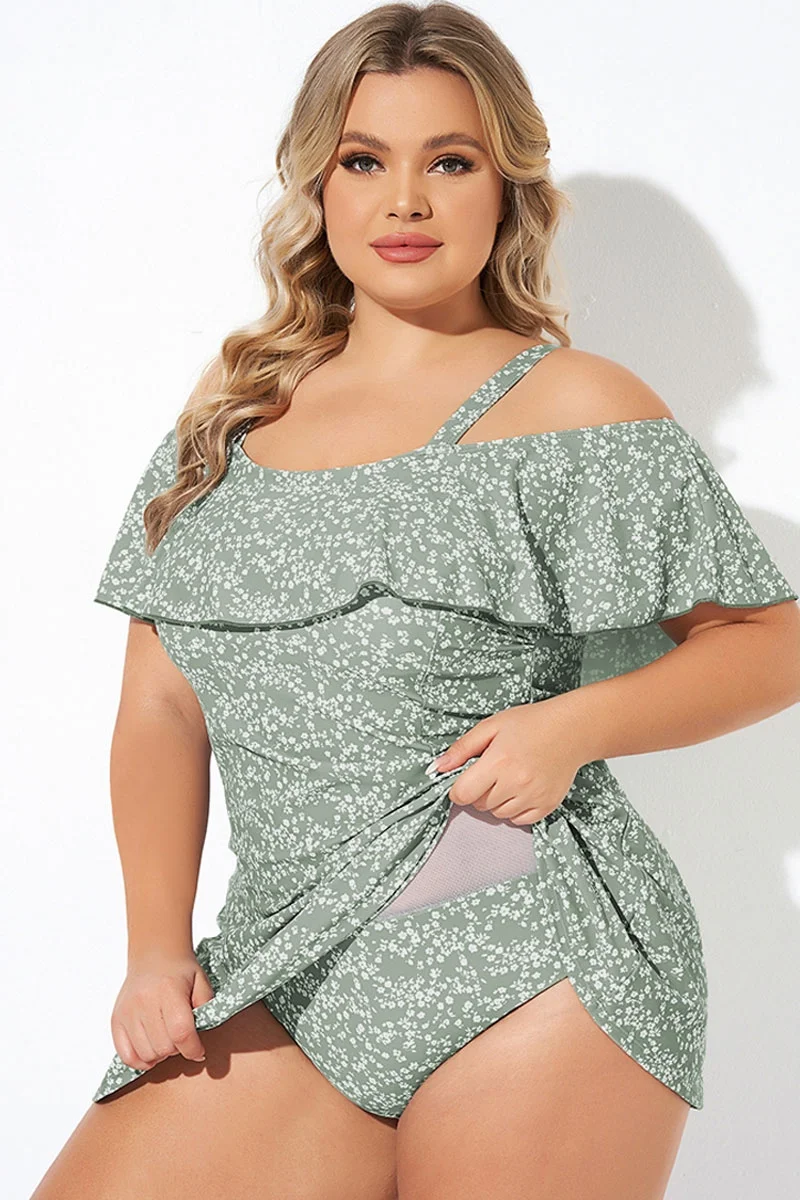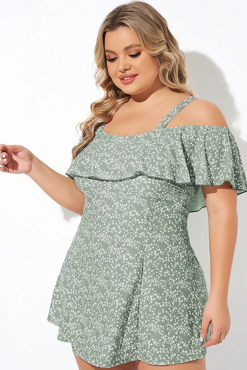 Floral Ruffle Cold Shoulder Women Swimdress - PremCurve