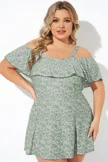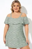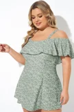 Floral Ruffle Cold Shoulder Women Swimdress